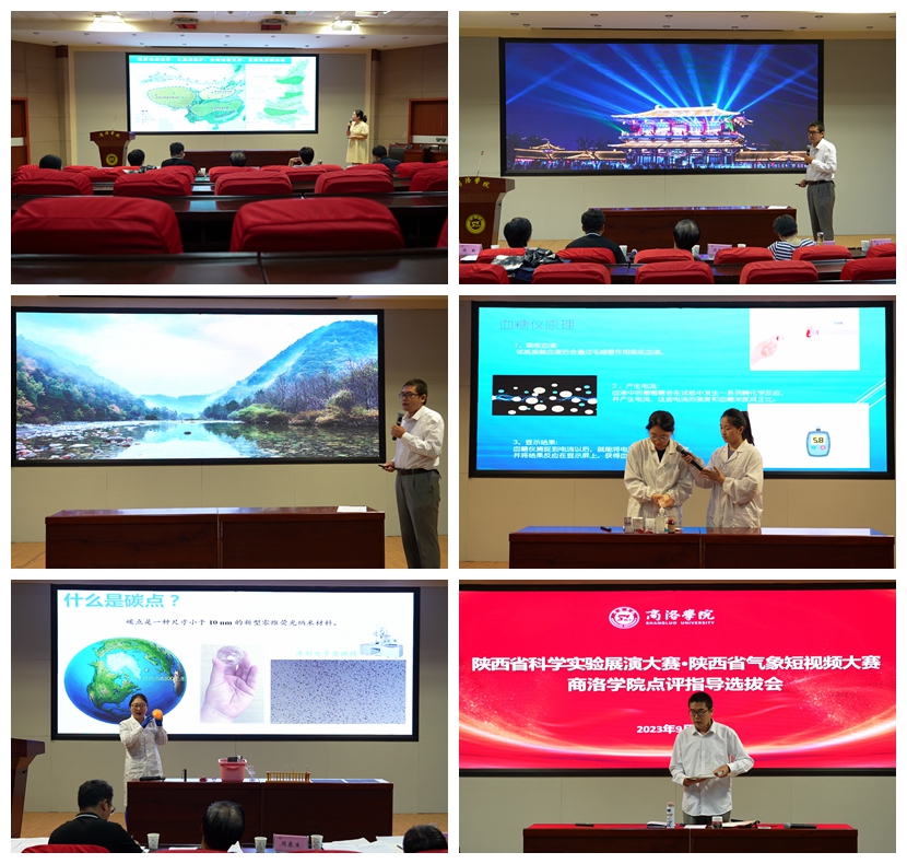 參加比賽的9組隊伍分別通過現場講解、視頻展示、實驗展演、情景劇場等方式展示了團隊的科普作品。由商洛市科協科普部部長陳淑萍及我校相關專家組成的評委分別從選題方向、受眾群體、場景設計、肢體語言、實驗環節、講解技巧等方面進行了點評與指導。經過現場評議,推薦王毅夢、屈佳、何念竹3個團隊參加陜西省科學實驗展演大賽;推薦房舒、張博、王緒旺3位教師參加陜西省氣象科普視頻大賽。