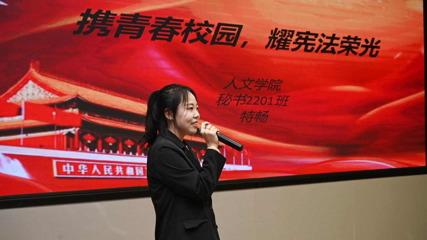 為深入學(xué)習(xí)宣傳貫徹習(xí)近平法治思想,在全校范圍內(nèi)營(yíng)造“學(xué)憲法 講憲法”的良好氛圍,根據(jù)陜西省教育廳和學(xué)校黨委相關(guān)工作安排,9月21日下午,我校舉辦2023年“學(xué)憲法 講憲法”活動(dòng)主題演講比賽校級(jí)決賽。校黨委副書(shū)記劉勇,商洛市委理論講師團(tuán)團(tuán)長(zhǎng)楊月治,商洛革命老區(qū)暨紅色文化研究中心主任楊增強(qiáng)以及組織部、宣傳部、學(xué)工部、校團(tuán)委相關(guān)負(fù)責(zé)人擔(dān)任比賽評(píng)委。各二級(jí)學(xué)院黨委、黨總支負(fù)責(zé)人和學(xué)生代表現(xiàn)場(chǎng)觀摩比賽。
