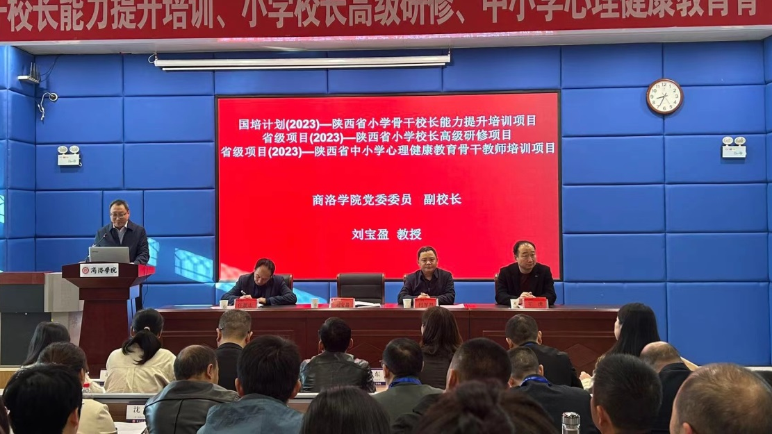 10月31日,國(guó)培計(jì)劃(2023)-陜西省小學(xué)骨干校長(zhǎng)能力提升培訓(xùn)項(xiàng)目,省培項(xiàng)目(2023)-陜西省小學(xué)校長(zhǎng)高級(jí)研修項(xiàng)目、陜西省中小學(xué)心理健康骨干教師培訓(xùn)項(xiàng)目開班典禮在我校舉行。副校長(zhǎng)劉寶盈教授出席開班典禮并講話。繼續(xù)教育學(xué)院院長(zhǎng)付軍昌,來(lái)自全省各地市近二百名小學(xué)校長(zhǎng)和中小學(xué)心理健康骨干教師參加了開班典禮。開班典禮由繼續(xù)教育學(xué)院副院長(zhǎng)任新山主持。