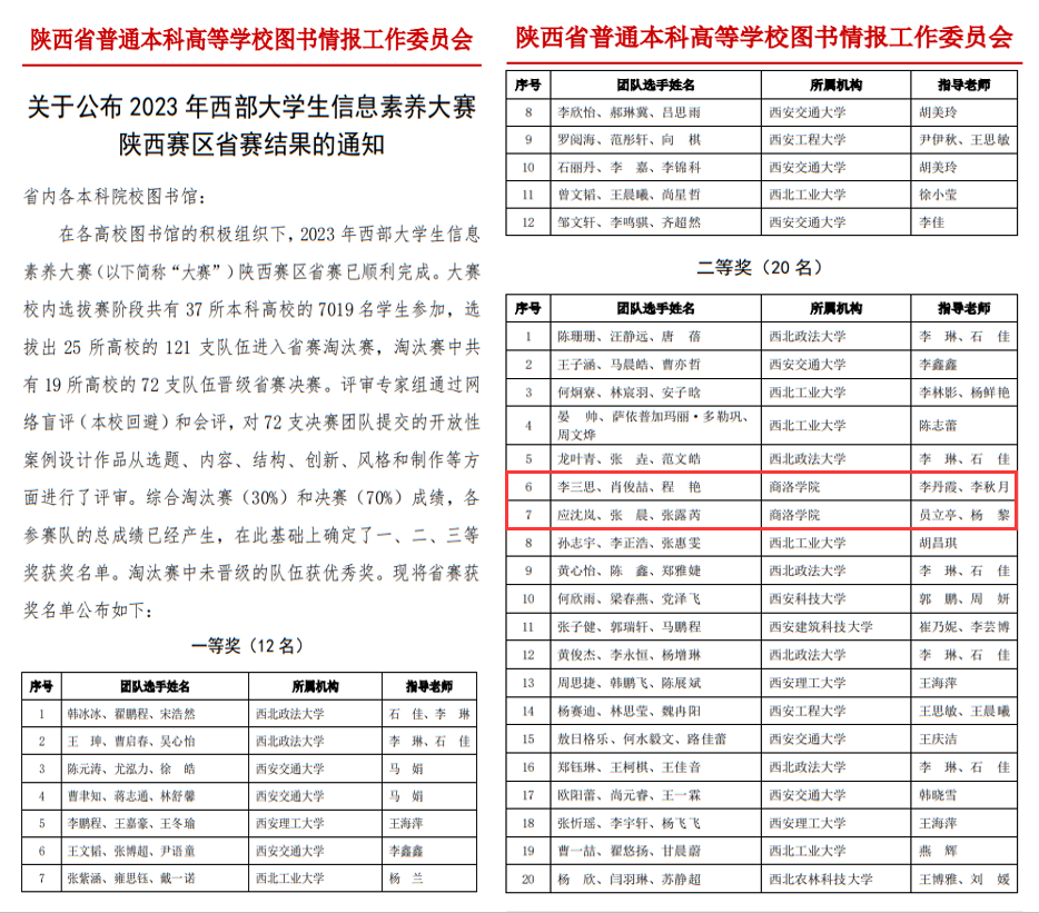 我校學生在2023年西部大學生信息素養大賽陜西賽區省賽中喜獲佳績