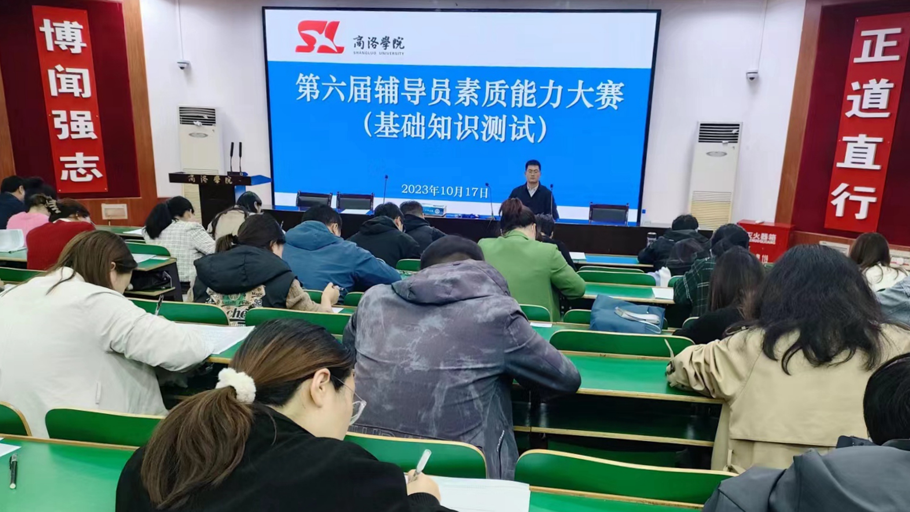 我校全體專職輔導(dǎo)員參加了基礎(chǔ)知識(shí)測(cè)試。各學(xué)院根據(jù)本學(xué)院輔導(dǎo)員綜合素質(zhì)、日常工作能力與實(shí)際表現(xiàn),擇優(yōu)推薦10名輔導(dǎo)員參加了校級(jí)決賽。