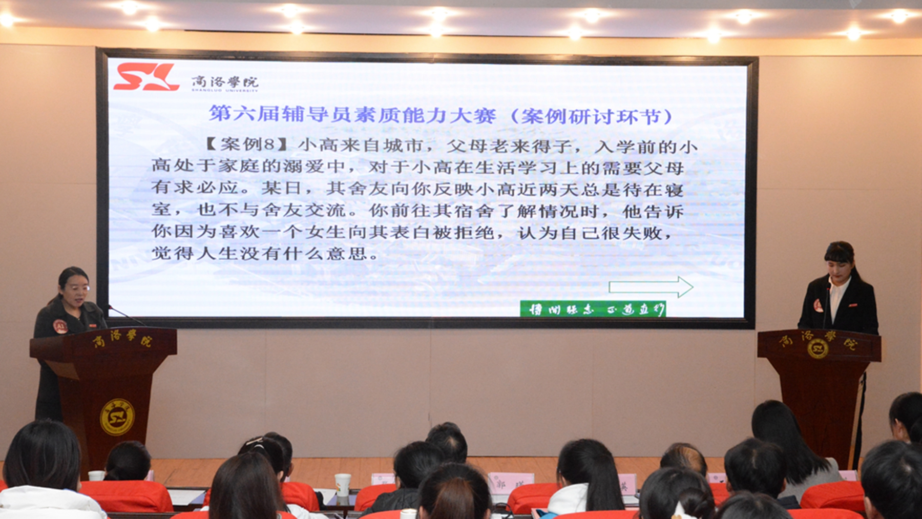 為進(jìn)一步加強(qiáng)我校輔導(dǎo)員隊(duì)伍專業(yè)化、職業(yè)化建設(shè),增強(qiáng)輔導(dǎo)員育人技能本領(lǐng),推動(dòng)思想政治工作高質(zhì)量發(fā)展,提升立德樹人工作成效,我校舉辦了第六屆輔導(dǎo)員素質(zhì)能力大賽。11月29日大賽落下帷幕,副校長(zhǎng)郭瑾出席決賽現(xiàn)場(chǎng)。組織部、人事處、學(xué)工部、宣傳部、團(tuán)委負(fù)責(zé)人及陜西省第四屆高校輔導(dǎo)員職業(yè)能力大賽二等獎(jiǎng)獲得者、數(shù)計(jì)學(xué)院學(xué)工辦主任趙萍擔(dān)任決賽評(píng)委。