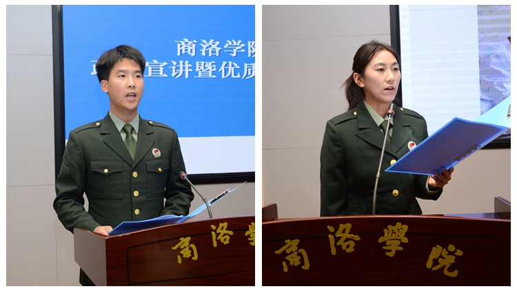 退伍學生代表王立強、甄蕊用真摯的情感,講述了各自帶著親人的囑托和學校的期盼參軍入伍,融入綠色軍營的心路歷程。他們表示,兩年的軍旅生涯讓他們塑造了健康體魄、磨煉了頑強意志、提升了學習能力、受到了精神洗禮。他們號召大學生應積極響應國家征兵政策,把報國之志轉化為實際行動,為富國強軍貢獻自己的才華和青春。