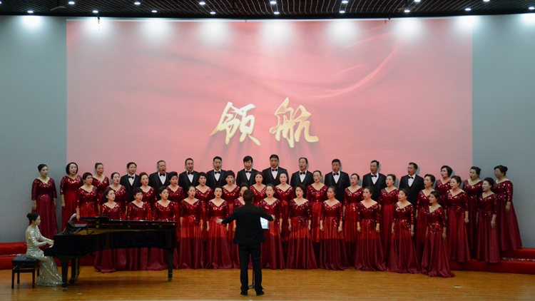 商州紅梅聲歌合唱團表演了混聲合唱《領航》、女聲合唱《桃花紅杏花白》等曲目,用絢爛的樂聲表達億萬中華兒女愛黨愛國的赤子情懷和共同心聲,演繹了山西民歌蘊含的民族藝術魅力,激發觀眾對美好世界的追求,傳遞了立德樹人、美育啟智的價值理念。