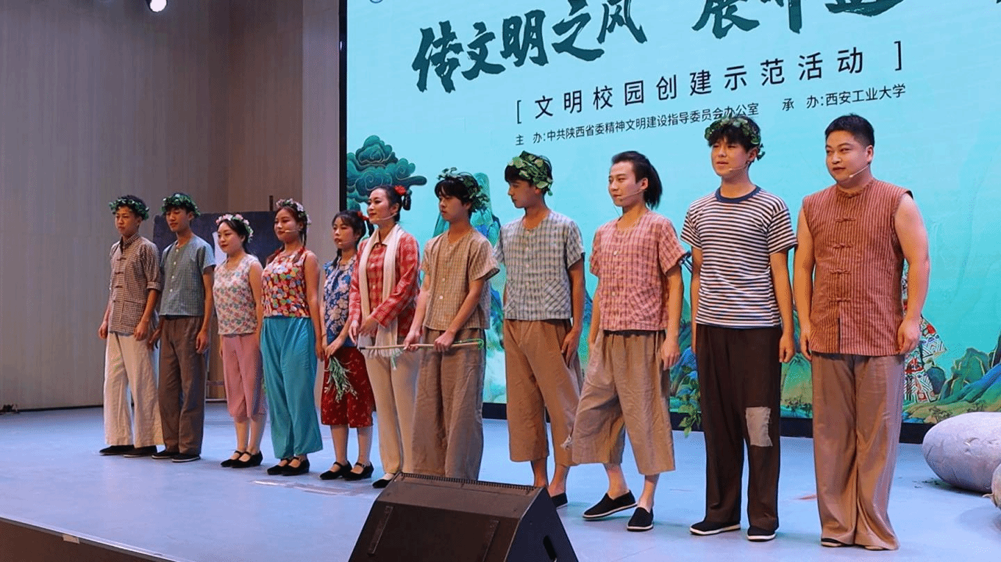 我校藝術(shù)學(xué)院教師莫飛帶隊(duì)、馮淵指導(dǎo),音樂學(xué)專業(yè)11名學(xué)生表演了商洛花鼓《月亮光光》選段《追趕星星和太陽》,與西安工業(yè)大學(xué)、延安大學(xué)、西安外事學(xué)院、陜西藝術(shù)職業(yè)學(xué)院表演的花鼓燈、信天游、秦腔、古琴、鼓樂等非遺節(jié)目逐一展示,充分展現(xiàn)了中華優(yōu)秀傳統(tǒng)文化的獨(dú)特魅力。