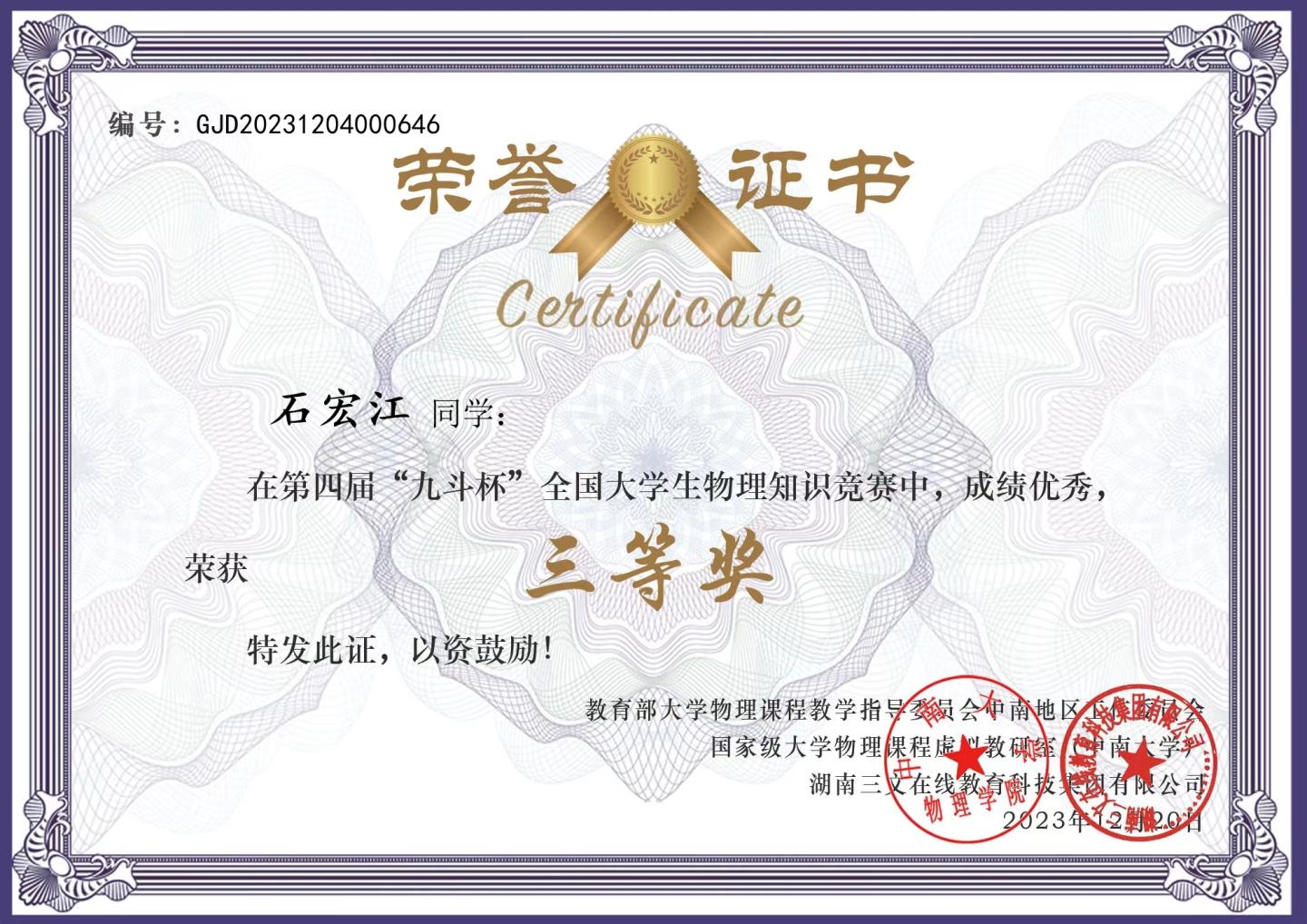 近日,由教育部大學物理課程教學指導委員會中南地區工作委員會、國家級大學物理課程虛擬教研室主辦的第四屆“九斗杯”全國大學生物理知識競賽結果揭曉。我校電信學院學生石宏江、閆露、楊悅、賀楊在決賽中喜獲全國三等獎。