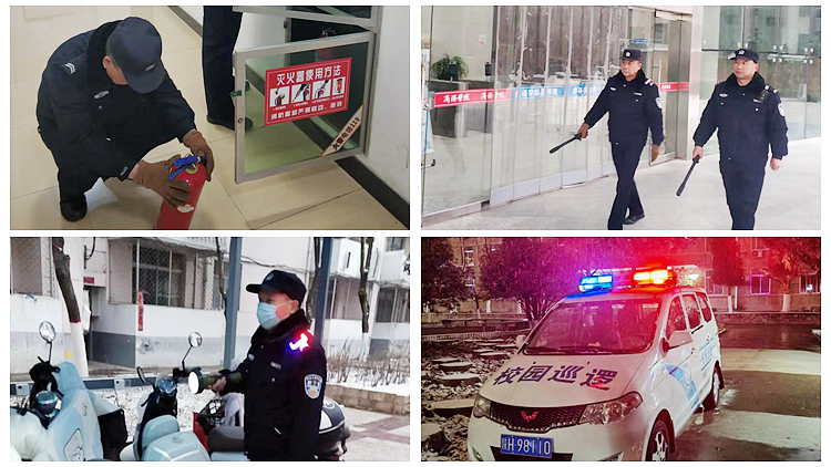 保衛(wèi)處:寒假期間,當(dāng)廣大師生和家人歡聚休息時,新春佳節(jié),當(dāng)千家萬戶共享團(tuán)圓時,為確保校園安全,全體保衛(wèi)干部職工和校衛(wèi)隊員毅然舍小家,顧大家,堅守在各自工作崗位上,不懼風(fēng)雪,不畏嚴(yán)寒,以“時時放心不下”的情懷全力做好安全保衛(wèi)工作,確保校園安全穩(wěn)定,實現(xiàn)了“零發(fā)案”的目標(biāo),有效保障了全校師生度過了一個平安祥和的春節(jié)和假期。放假前,保衛(wèi)處專門下發(fā)通知,對學(xué)校寒假和春節(jié)期間安全保衛(wèi)工作進(jìn)行周密安排,要求校內(nèi)各單位認(rèn)真開展安全教育和安全檢查,切實落實各級安全責(zé)任,排除各種安全隱患,加強(qiáng)留校師生的安全管理,嚴(yán)格執(zhí)行帶班值班備勤制度,加強(qiáng)值班和信息報送,保證假期各項安保工作不間斷。假期當(dāng)中,保衛(wèi)處堅持“預(yù)防為主,安全第一”原則,扎實開展校園及周邊安全檢查巡查,組織專人對各個重點區(qū)域開展安全隱患排查和執(zhí)勤守護(hù),按照“誰主管,誰負(fù)責(zé)”的原則督促相關(guān)單位及時整改存在問題,落實安全防范措施,嚴(yán)防各自工作區(qū)域、業(yè)務(wù)領(lǐng)域發(fā)生安全事故。保衛(wèi)處各警區(qū)和“校園110”堅持24小時值班,隨時處置各類突發(fā)事件,監(jiān)控室對校園重點區(qū)域?qū)崟r進(jìn)行監(jiān)控,校衛(wèi)隊加強(qiáng)校門管控,各警區(qū)加大對校園的巡邏力度,寒假和春節(jié)期間校園安全穩(wěn)定和諧有序。