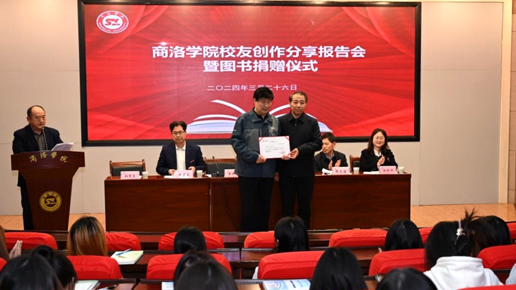 3月26日,我校82屆中文系校友楊高智受邀為師生作創作分享報告,并向學校捐贈個人編撰的圖書《商州存照》70冊。副校長王新軍出席捐贈儀式。國內合作與校友工作處、圖書館負責人,人文學院黨政負責人,圖書館、國內合作與校友工作處全體工作人員和師生代表100余人參加儀式。儀式由人文學院黨委書記杜明生主持。