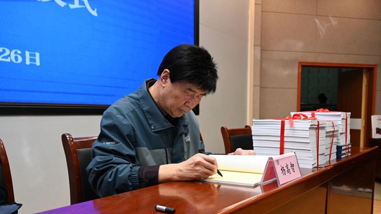 捐贈儀式上,王新軍為楊高智頒發收藏證明,圖書館館長張國春代表學校接受贈書。