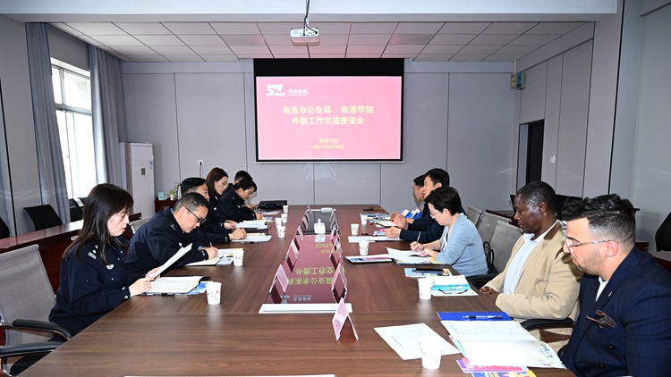 國際合作交流處處長張建芳簡要匯報了我校外教管理相關工作。商洛市出入境管理處處長陳新琳、經文保支隊隊長王洋詳細介紹了外籍人員服務工作流程和現行涉外法律政策。