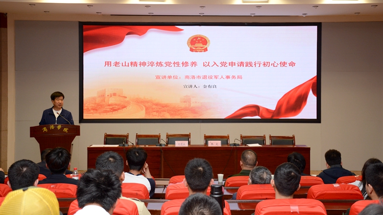為進(jìn)一步加強(qiáng)學(xué)生愛(ài)國(guó)主義教育,4月17日,我校邀請(qǐng)商洛市退役軍人事務(wù)局三級(jí)調(diào)研員金有良為我校師生作報(bào)告。各二級(jí)學(xué)院黨委、黨總支相關(guān)負(fù)責(zé)人、征兵工作聯(lián)絡(luò)員,我校優(yōu)質(zhì)兵員儲(chǔ)備基地訓(xùn)管骨干、預(yù)征班學(xué)員及學(xué)生代表共計(jì)160余人參加報(bào)告會(huì)。