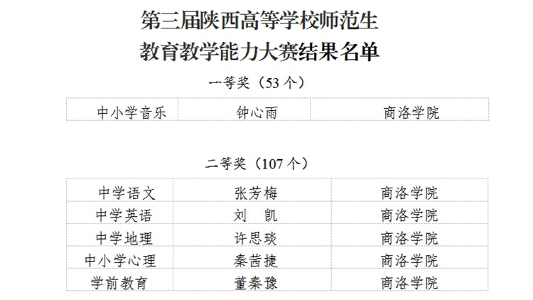 商洛學院在陜西省第三屆高校師范生教育教學能力大賽中喜獲佳績