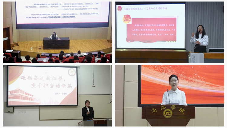 在團(tuán)員青年主題宣講環(huán)節(jié),校團(tuán)委紅色號(hào)角宣講團(tuán)成員白易媛、張雨欣、楊婷、特暢以《砥礪奮進(jìn)新征程實(shí)干擔(dān)當(dāng)譜新篇》《學(xué)思踐悟新思想篤行實(shí)干向未來》《生而逢盛世青年當(dāng)有為》《讓學(xué)雷鋒在新時(shí)代大學(xué)生中蔚然成風(fēng)》為題,著眼于優(yōu)秀校友、身邊典型,號(hào)召廣大青年堅(jiān)定理想信念,聽黨話、跟黨走,爭(zhēng)做有理想、能吃苦、敢擔(dān)當(dāng)、肯奮斗的新時(shí)代好青年。