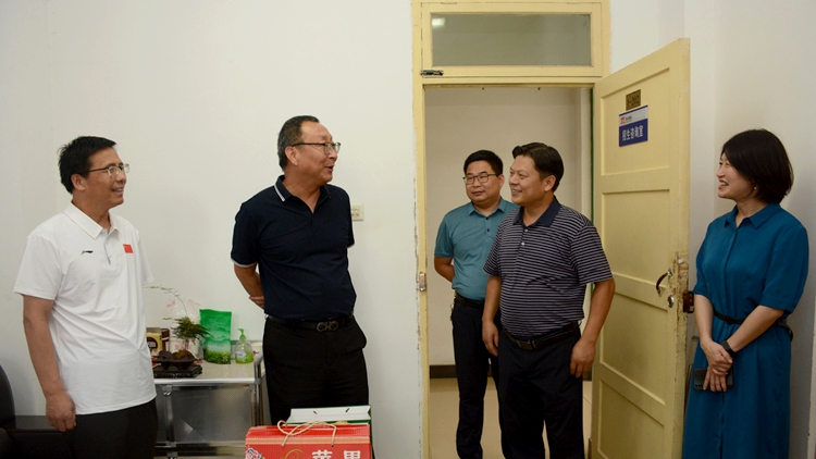 8月8日,郭瑾走訪了學生宿舍、教職工食堂、大學生活動中心施工現場、8號樓和各保安值班崗等場所,實地檢查假期校園安全、施工進度、服務保障等工作開展情況,詳細排查各項安全隱患。郭瑾強調,校園安全是學校事業發展的前提,感謝假期在崗教職員工的勤懇敬業、無私奉獻,希望大家時刻繃緊安全生產之弦,不斷提高服務保障能力和管理水平,為秋季新學期的到來提前謀劃、做足準備,以實際行動確保校園穩定安全。