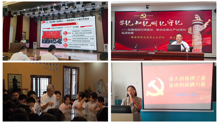 8月13日至16日,馬克思主義學院教師劉麥霞、蔣正治、楊增強、武曉婕、路遠前往西安海關,分別以《黨的二十屆三中全會精神解讀》《弘揚偉大建黨精神 從百年黨史中汲取奮進力量 》《加強黨的紀律建設、推動全面從嚴治黨向縱深發展》《做一名忠誠務實擔當干凈的年輕干部》《重讀<共產黨宣言> 堅定理想信念》為題作了專題報告。自8月20日開始,馬克思主義學院武曉婕、王秀絨、彭衛麗等教師相繼赴商洛市各中小學校,圍繞偉大建黨精神、黨史學習教育、黨紀學習教育三個主題開展系列主題宣講活動。