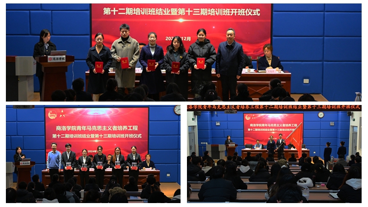 組織部部長張向東為第十三期“青馬工程”培訓班指導教師頒發聘書,宣傳部部長王霄飛為學員代表贈送學習書籍《習近平與大學生朋友們》,學工部部長李彥廣宣讀《關于“青年馬克思主義者培養工程”第十三期培訓班開班的通知》,馬克思主義學院黨總支書記劉麥霞為培訓班授旗。