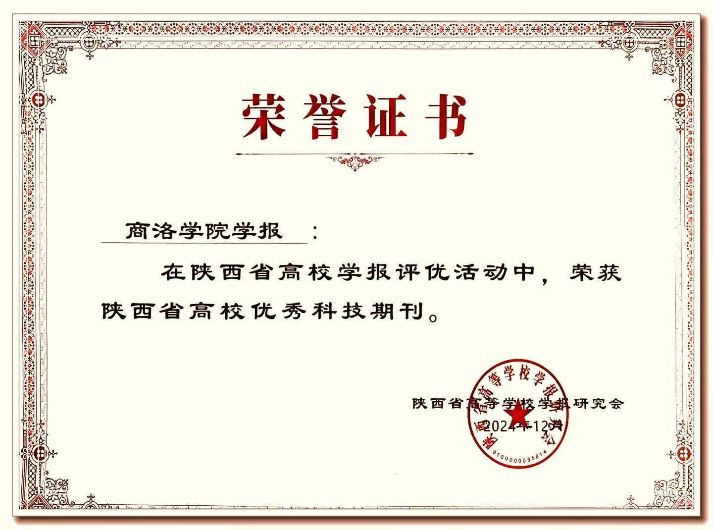 商洛學院學報獲評2024年度陜西省高校優秀科技期刊
