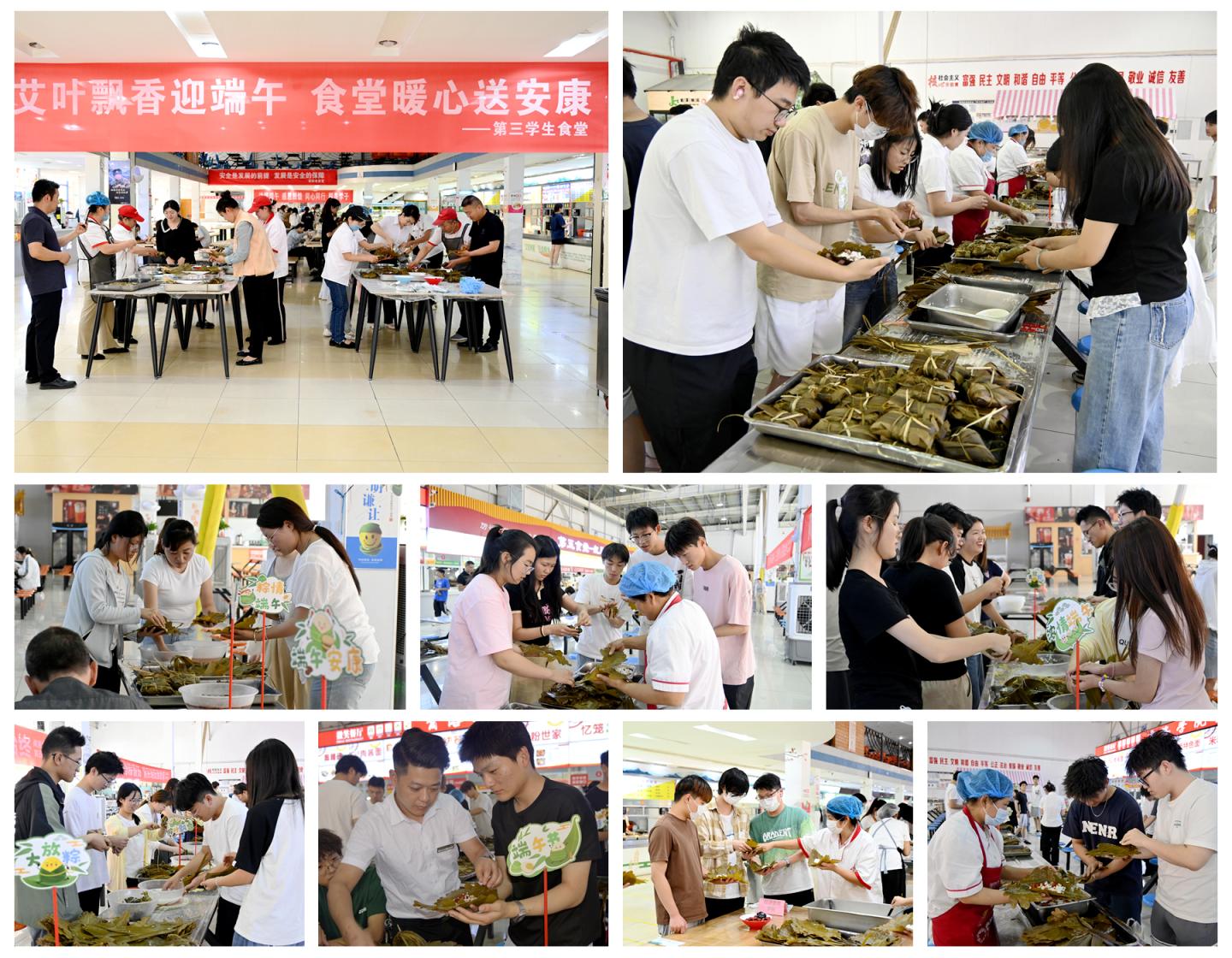 為弘揚中華優秀傳統文化,深化“三全育人”綜合改革,營造積極向上的校園文化氛圍,5月28日,我校精心策劃并組織開展了“師生攜手慶端午,三全育人貫始終”主題文化活動。活動在北新街校區與丹江校區學生食堂同步展開,吸引師生千余人參加。