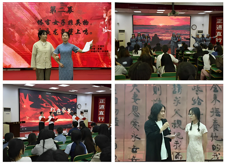 藝術學院團員青年以舞臺劇形式演繹了革命夫妻陳覺和趙云霄血淚遺書感天動地的故事、女革命家秋瑾追求自由與變革的傳奇人生、冷云等抗聯女戰士挽臂涉入烏斯渾河的壯烈場景,深情誦讀趙一曼就義前寫給兒子的絕筆信,通過沉浸式的場景展示,穿越時空和革命先輩進行歷史對話,深刻感悟黨在千錘百煉中凝聚形成的精神力量。