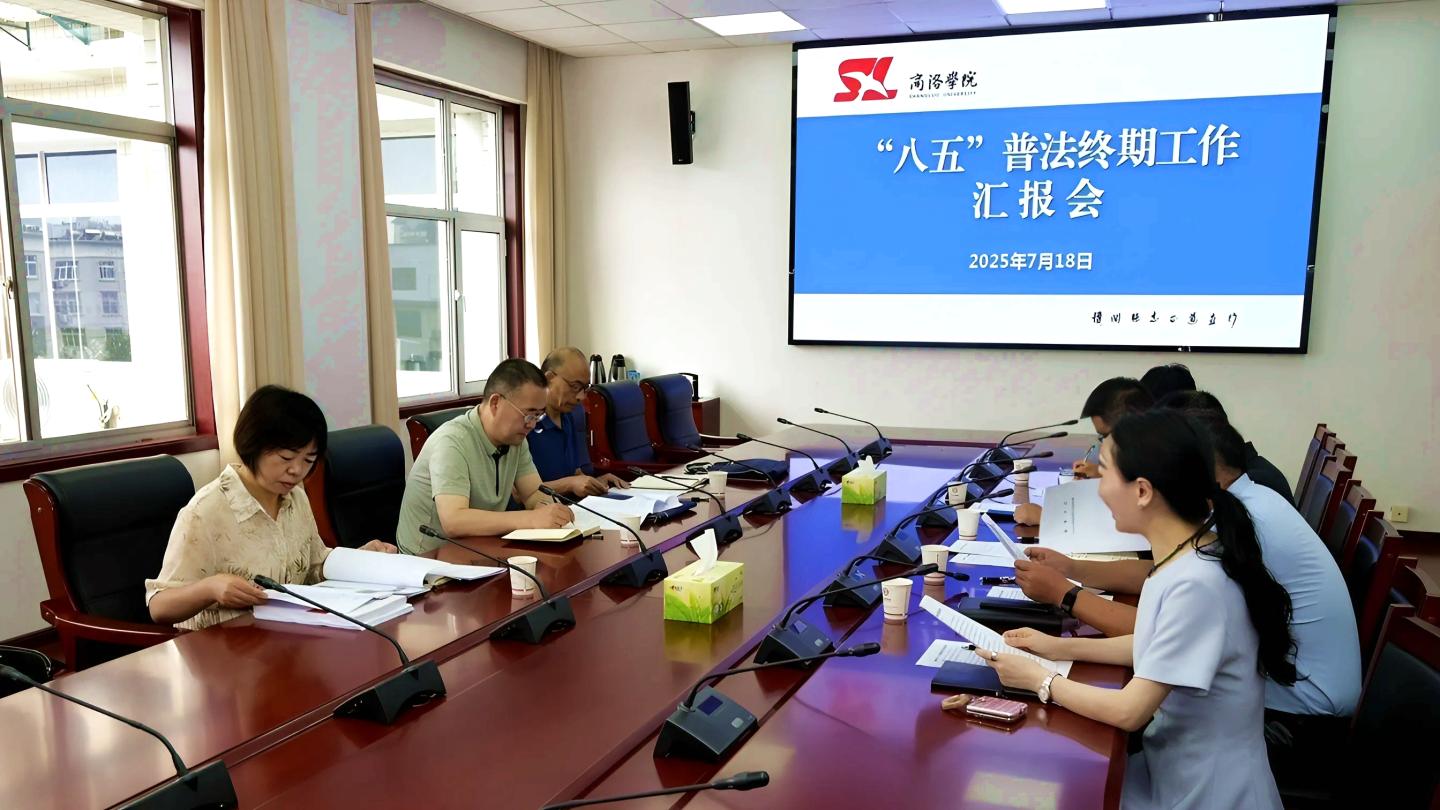 7月18日,商洛市“八五”普法總結驗收實地調研組成員,市委組織部四級調研員李海平、市中級人民法院四級調研員孫天峰、市委依法治市辦秘書科科長伍丹英一行3人來校開展“八五”普法終期檢查指導。黨委辦公室·院長辦公室、宣傳部、學生處、保衛處等部門相關負責人參加匯報座談會。