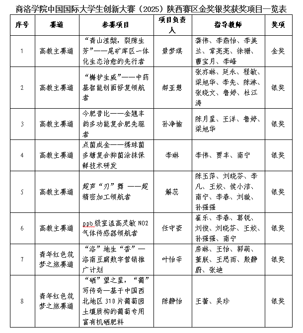 商洛學院學子在2025年中國國際大學生創新大賽省級復賽中收獲佳績
