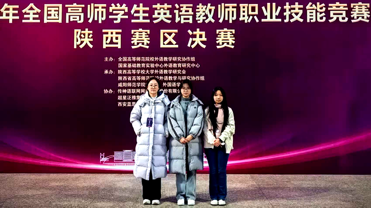 11月28日至29日,全國高師學生英語教師職業技能競賽(陜西賽區)決賽在咸陽師范學院圓滿落幕。我校3名英語專業學子與來自全省19所高校的214名選手同臺競技,經過激烈角逐,最終英語2401班陳可欣榮獲一等獎,英語2402班李嘉欣、英語2401班楊笑妍榮獲二等獎。