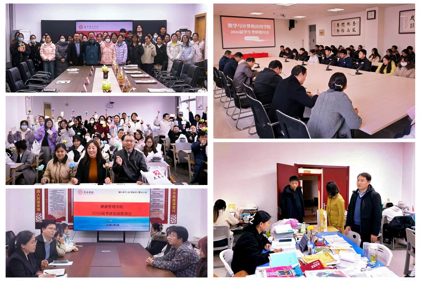 為鼓舞考研士氣、堅定備考信心,全力做好2026屆畢業生考研支持保障工作,近期,我校各二級學院陸續開展考研誓師、動員慰問、沖刺鼓勁等活動,以多種形式為學子注入精神動力,營造團結奮進、積極向上的備考氛圍。