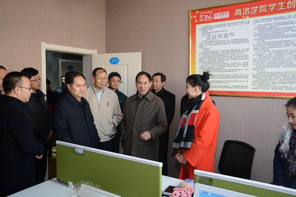 12月30日,商州區農村淘寶運營暨年貨大禮包啟動儀式在區電子商務產業孵化基地舉行。陜西省商務廳副廳長王國龍,商洛市市長陳俊等領導出席了啟動儀式。王國龍在活動期間視察了我校大學生創新創業基地,并勉勵我校學生發揮自身優勢,積極投身自主創業大潮。