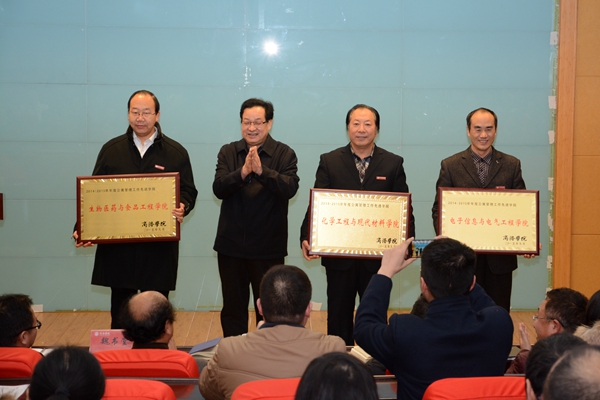 2015年,我校以“三嚴三實”專題教育為載體,以黨建為龍頭,以“三早一晚”及學風示范工程為抓手,以大學生創新創業為突破口,不斷深化“以學生為本”的工作理念,圓滿完成了各項工作任務,取得了較好成績。經學校研究,生物醫藥與食品工程學院等3個學院被評為學生工作考核先進集體,經濟與管理學院等3個學院被評為畢業生就業工作先進集體,化學工程與現代材料學院等3個學院被評為公寓管理工作先進學院,王秀絨等28人被評為優秀班主任,張俊華等8人被評為學生管理先進個人,李川川等11人被評為學生工作考核優秀個人,敬曉明等14人被評為公寓管理工作先進個人,張亞強等13人被評為畢業生就業工作先進個人,張善紅等6名輔導員和梁豐等23名班主任的工作日志被評為優秀學生工作日志,蘇鐵柱等人的17篇論文被評為學生工作優秀論文。