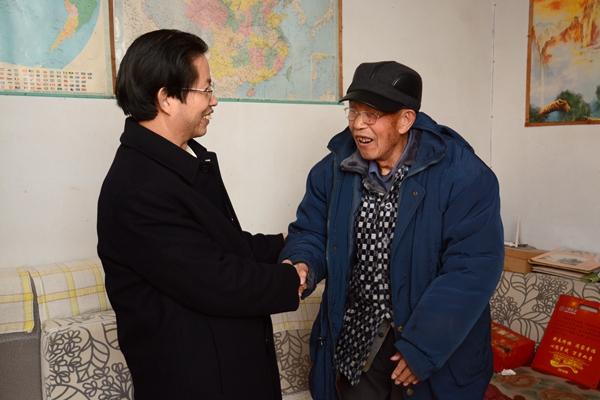 在孫玉峰老人家里,周樹紅詳細詢問老人的身體和家庭情況,以及生活上需要組織幫助解決的問題,對他為新中國教育事業做出的貢獻表示感謝,祝福他新年快樂、幸福安康,并叮囑他保重身體。