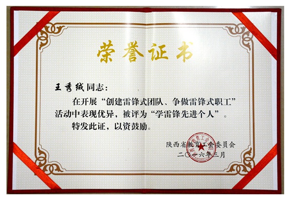 根據日前陜西省教育工會委員會下發的《關于“創建雷鋒式團隊、爭做雷鋒式職工”活動的表彰決定》,我校工會評選并推薦的人文社會科學學院心理服務志愿者團隊、人文社會科學學院歷史系主任王秀絨兩個學雷鋒先進典型,分別獲得陜西省高校“創建雷鋒式團隊、爭做雷鋒式職工”活動學雷鋒先進集體、先進個人榮譽稱號。