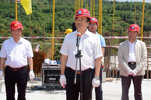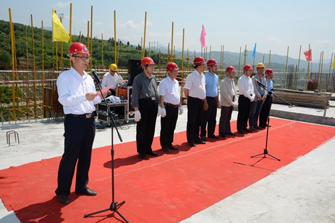 副校長劉寶盈主持封頂儀式。郭書偉、屈建軍分別代表施工和監理單位作了發言。