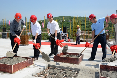 在熱烈的掌聲和鞭炮聲中,校領導及來賓代表鏟起混凝土為大樓封頂,共同見證了大樓最后一塊混凝土板的澆筑過程。