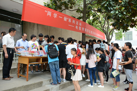 為扎實推進“兩學一做”學習教育,深入學習黨規黨章及習近平總書記系列重要講話精神,使“學”得深入、“做”得有效,7月7日,電子信息與電氣工程學院學生黨支部舉辦的“兩學一做”公益贈書活動在中心花園展開。