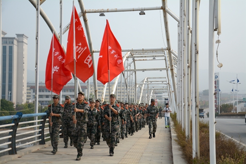 上午8點(diǎn),全體新生身著迷彩服,從學(xué)校操場(chǎng)出發(fā),沿北新街、江濱大道、商鞅大道、比亞迪大道步行抵達(dá)丹江校區(qū)并返回,全程10公里。在行軍過程中,新生們斗志昂揚(yáng)、隊(duì)列齊整、秩序井然,充分展示了軍訓(xùn)成果和我校學(xué)子積極向上、不怕吃苦的精神風(fēng)貌,引來了過往市民的注目和贊揚(yáng)。
