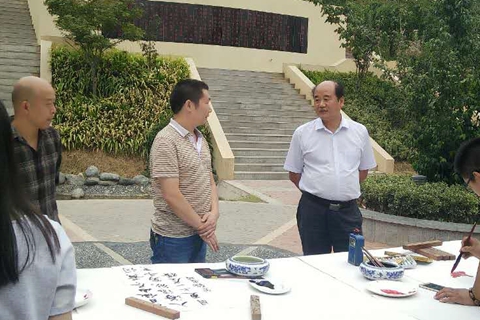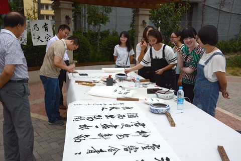 9月14日下午,藝術(shù)學(xué)院舉辦了以“迎國慶 慶中秋”為主題的書畫筆會(huì)。師生們在莘梓苑鋪開畫布,飽蘸濃墨,現(xiàn)場揮毫,共慶中秋佳節(jié)和祖國華誕的到來。黨委書記、校長劉建林現(xiàn)場觀看了師生創(chuàng)作的書畫作品。
