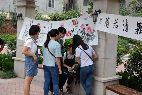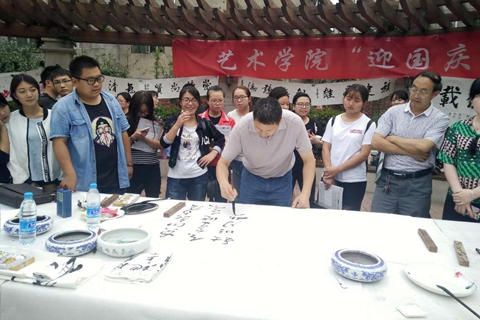 活動(dòng)中,藝術(shù)學(xué)院美術(shù)學(xué)專業(yè)教師及學(xué)生30余人以筆代言,以畫為媒,通過一幅幅形式多樣,立意新穎的書畫作品,抒發(fā)自己對祖國、對傳統(tǒng)文化的熱愛之情。活動(dòng)期間共創(chuàng)作書法、國畫等作品40余幅,引來眾多師生觀摩學(xué)習(xí)。