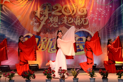 本次晚會(huì)以“夢(mèng)想起航”為主題,在歌伴舞《陽光路上》婀娜多姿的舞蹈中拉開帷幕。整場(chǎng)晚會(huì)形式多樣,現(xiàn)代與古典同臺(tái),聲樂與器樂相和,浪漫與詼諧相伴。歌舞、相聲、魔術(shù)、樂器獨(dú)奏等精彩的節(jié)目為觀眾呈現(xiàn)了一場(chǎng)豐盛的視聽盛宴。由藝術(shù)學(xué)院選送的笛子獨(dú)奏《揚(yáng)鞭催馬運(yùn)糧忙》笛聲悅耳、美妙動(dòng)聽,使觀眾感受到了商洛學(xué)院人的奮斗精神與青春氣息。生物學(xué)院選送的腰鼓表演《歡天喜地迎新生》與化材學(xué)院選送的陜北名歌《東方紅》,具有濃厚的地方特色,展現(xiàn)出了我校學(xué)子多才多藝、昂揚(yáng)向上、勇于創(chuàng)新的精神風(fēng)貌。晚會(huì)在藝術(shù)學(xué)院教師王娜娜等帶來的歌伴舞《復(fù)興之歌》中步入了高潮,最終在陣陣掌聲中完美謝幕。