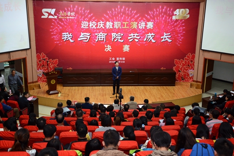 10月12日下午,由工會(huì)、宣傳部舉辦的“我與商院共成長(zhǎng)”主題演講比賽進(jìn)行了決賽。來(lái)自工會(huì)各分會(huì)的9名選手逐一登臺(tái)演講,最終文傳學(xué)院教師鐘思遠(yuǎn)奪得一等獎(jiǎng)。校黨委委員、紀(jì)委書記王思懷觀看了比賽并為獲獎(jiǎng)選手頒獎(jiǎng)。各二級(jí)學(xué)院、相關(guān)職能部門師生代表近500人觀摩了比賽。
