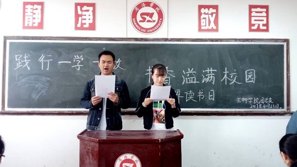 4月23日上午10點,生物學院組織師生在五號樓105及晨曦園舉行了“踐行‘一學一做’,書香溢滿校園”活動,生物學院部分師生參加了本次活動。