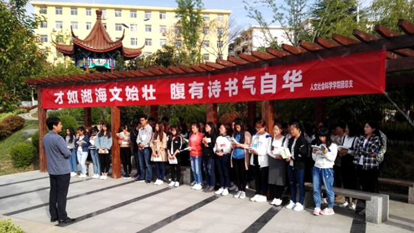 4月23日,人文社會科學學院2016級思想政治教育專業全體學生來到竹園進行晨讀。
