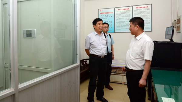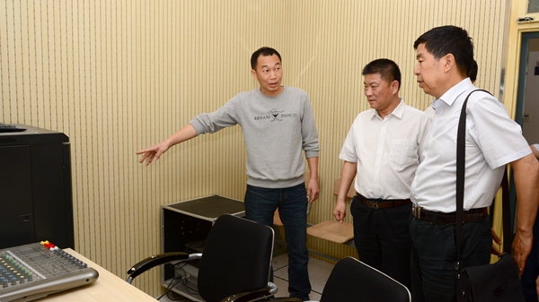 在范新會的陪同下,王敏一行現場檢查了我校試卷保密室和廣播室大學英語聽力播音設備。