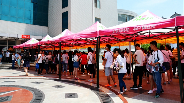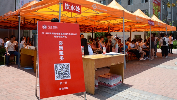 6月18日,是陜西省普通高校招生外語口語考試日。上午7:30開始,1541名考生陸續從商洛各地趕赴我校,在學生志愿者的引導下,有序排隊進入考場參加考試,家長則在指定區域休息等候。