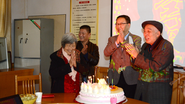校領導在祝壽會上和老壽星們親切交談,了解他們現在的生活情況和身體狀況,和他們一起點蠟燭、切蛋糕,祝福他們健康長壽、幸福美滿。