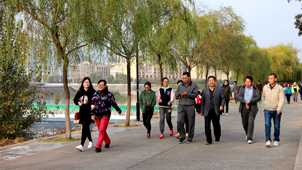 早上8點鐘,教職工們從商洛市江濱公園中段廣場出發,沿江濱路向東,途經東龍山江濱公園廣場等處后又原路返回行至起點。活動過程中,教職工們精神抖擻、意氣風發,團結互助、相互鼓勵,積極走起來、動起來、跑起來,整齊有力的腳步聲遍布江濱公園,吸引了眾多市民的關注,得到市民們的贊賞。最終,參與活動的教職工們均以頑強的意志抵達終點。
