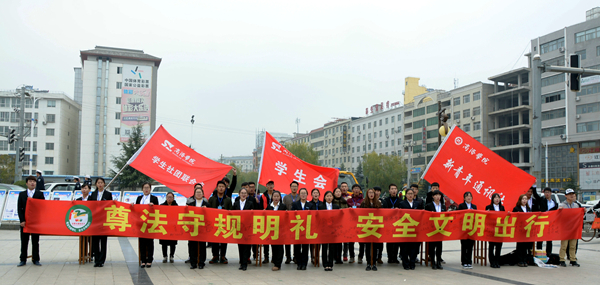 為倡導廣大市民文明、有序、安全出行,營造和諧文明的交通環境。12月2日,商洛市公安局交通警察支隊組織開展了以“遵法守規明禮 安全文明出行”為主題的2017年全國交通安全日宣傳活動。我校團委積極組織近百名志愿者參加本次活動。商洛市公安局交警支隊支隊長樊永生為我校文明交通志愿服務隊授旗。