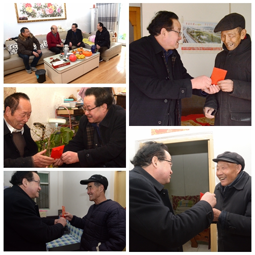 2月9日,在春節即將來臨之際,副校長魏書堂在院長辦公室、離退休職工工作處負責人的陪同下先后來到張和銀、崔振喜、費興順、任書年、王安言、王忠孝、張孝春等退休職工家中,為他們送去了慰問金和學校黨政的祝福與關懷。
