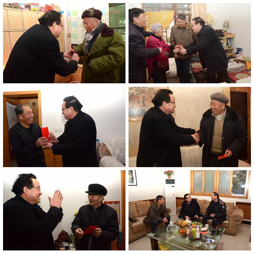 在退休老同志家中,魏書堂與他們促膝交談,噓寒問暖,詳細了解他們的身體狀況、生活情況以及他們急需解決的困難,囑托隨行人員要為老同志做好服務工作。魏書堂向老同志介紹了2017年學校的發展變化和取得的成績,感謝他們為學校發展作出的貢獻,叮囑他們要保重好身體,安享晚年,做到老有所樂、老有所為。退休老同志對學校一年來取得的成績感到分外自豪和欣慰,對學校黨政給予的關心和照顧表示衷心感謝,他們表示將一如既往地支持學校改革與發展,繼續為學校建設發揮余熱。