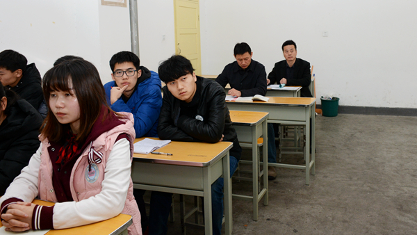 勤奮的莘莘學(xué)子早早到來,等候圖書館開放。