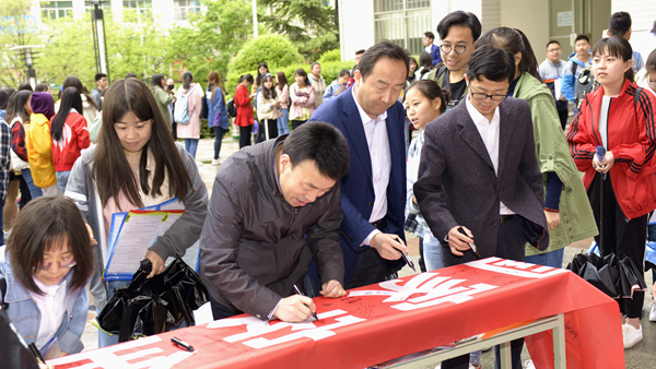 活動現場氣氛熱烈,大家積極在“維護國家安全是每個公民的神圣義務”條幅上簽名,并通過觀看國家安全教育展板內容、領取相關宣傳材料認真學習國家安全教育知識。